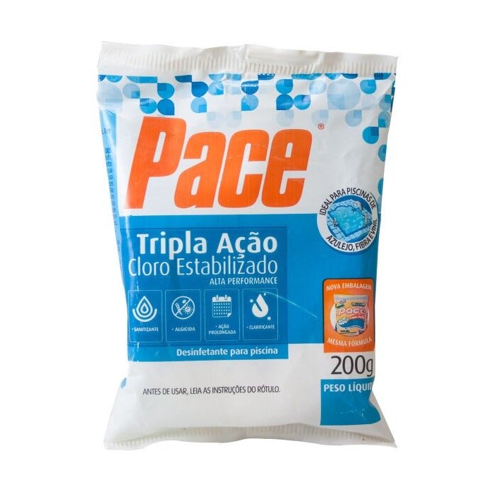 O Pace tripla ação é um desinfetante para piscinas com cloro estabilizado, Clarificante e Algicida. É ideal para piscinas de azulejo, fibra ou vinil