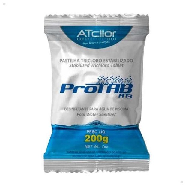 - Para garantir a segurança e o bem-estar dos usuários, é indispensável o tratamento adequado da água da piscina. Nesse sentido, a Protab AT3 da Atcllor é uma excelente opção, pois possui alto grau de pureza, são fabricadas com tricloro estabilizado 90% de cloro ativo, garantem água limpa, cristalina e segura, além de serem capazes de tratar grandes quantidades de água.