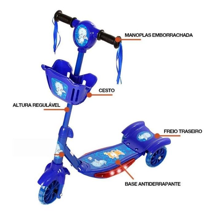 | Modelo | Patinete com cesta infantil luz e música roda dupla - azul |