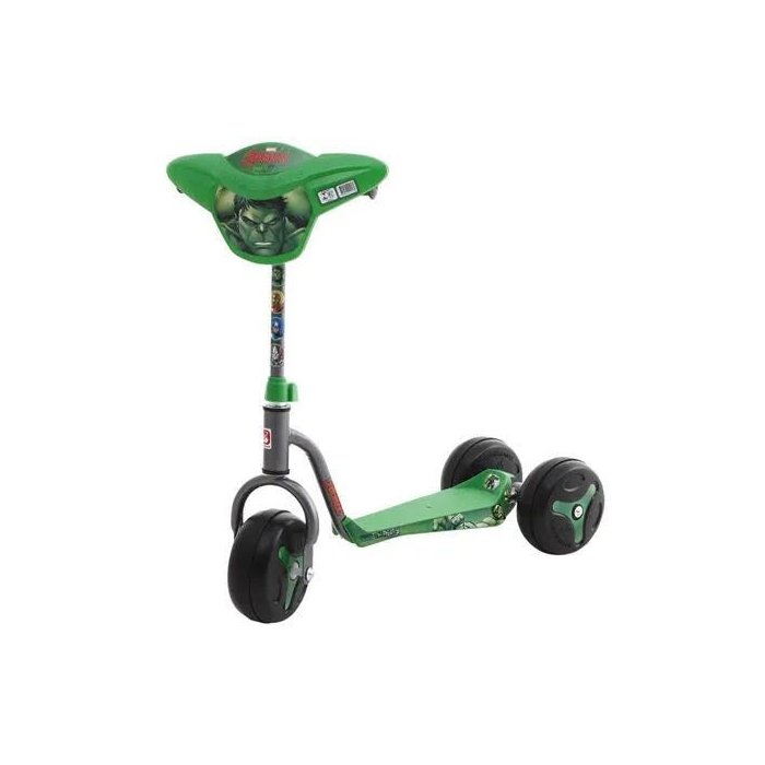 Esporte e diversão podem andar juntos sempre. Com o Patinete The Avengers Hulk da Bandeirante você vai incentivar seus filhos a gostar de praticar esportes, mostrando à eles uma atividade que faz bem para o corpo e ainda é prazerosa! O Patinete vai ajudá-los a desenvolver o equilíbrio, a coordenação motora, além de ensinar-lhes a vencer os obstáculos e os medos, impulsionando-as a desbravar o mundo ao seu redor com muita diversão! Feito aço carbono e materiais termoplásticos, por isso é leve para transportar e resistente. A altura do guidão é ajustável para acompanhar o crescimento da criança. As três rodas são em termoplástico super resistente e possuem anéis antiderrapantes que garantem a segurança dos pequenos, assim como maior estabilidade e apoio. A Manopla Rom Rom que ao ser girada emite um som de aceleração.
