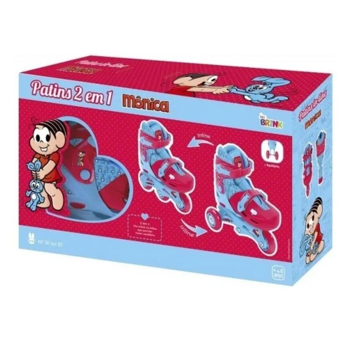 Patins 2 em 1 roller 3 rodas turma da mônica 29-36