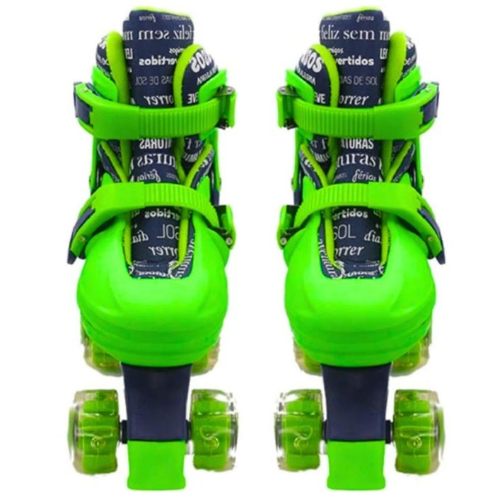 Patins Infantil 4 Rodas Paralelas com Luz Led Quad Roller Tam M Verde Verde
