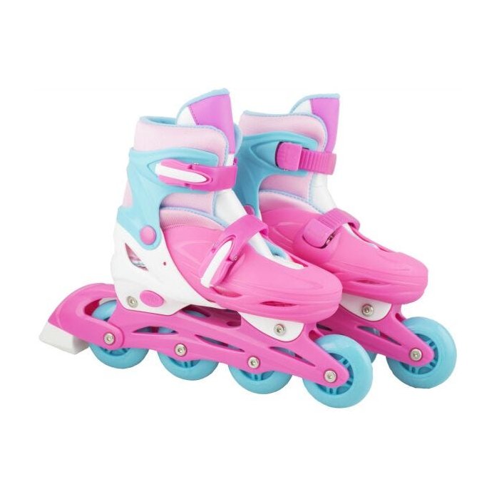 Patins Infantil com Led 4 Rodas In-Line Feminino 32-35 Rosa e Azul