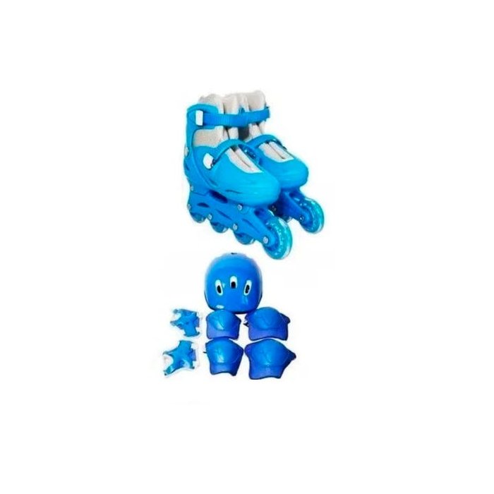 Patins Infantil Inline - 4 Rodas Kit Proteção Passeio - Azul G (39 a 42) - BW019