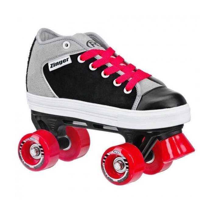 Roller Derby é uma marca americana especializada em patins tradicional (quad), patins inline, patins para gelo e acessórios. Fundada em 1936 foi pioneira na fabricação de botas para patinação no gelo. Atualmente é patrocinadora da seleção americana de Roller Derby, esporte que leva seu próprio nome. Patins Roller Derby Zinger Boy - Rodas: 58mm x 25mm Poliuretano - Rolamentos: G- Force 608ZB - Base: Nylon/Composite - Cores: Preto/Cinza/Vermelho