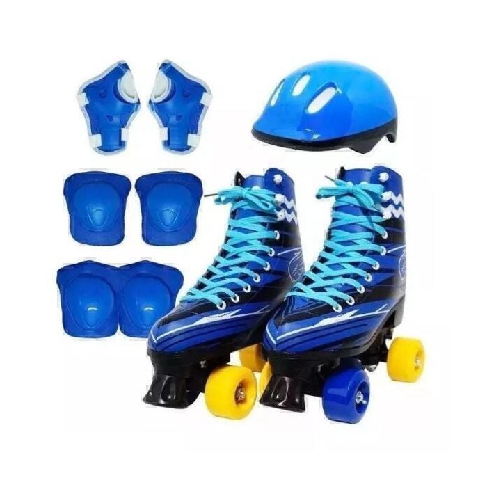 Patins Quad 4 Rodas Clássico Infantil Com Kit Proteção 31-32
