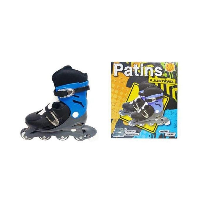IDADE RECOMENDADA Acima de 6 (seis) anos ESPECIFICAÇÕES TÉCNICAS: Material: Polipropileno (PP) e algodão Rodas em PVC com 64 mm OUTRAS INFORMAÇÕES: O tamanho M ajusta do nº 33 ao 36 Peso máximo suportado: até 60 kg Saltos, manobras e muita emoção é o que te espera Os Patins são feitos com plástico de alta qualidade e tem ajuste de tamanho. Além de duráveis tem o design super moderno, são perfeitos para passeios divertidos com toda a família. Características gerais Os primeiros patins foram criados por volta de 1760. Com o passar do tempo foi dado a eles outras formas e os aprimorando conforme as necessidades. Hoje, é usado para patinação recreativa e como esporte com muitas manobras, deslizes e saltos. Andar sobre rodas nunca foi tão divertido É aconselhável a aquisição de patins com numeração maior (de, pelo menos, dois números acima do utilizado pelo usuário). Isso deve-se às características do produto, que possui bota grossa, de algodão. Descrição Patins In Line (com 4 rodas alinhadas) Fabricado em ABS de alta resistência, rodas de abs com borracha e silicone. Todo revestido com espuma para maior conforto. Fivelas de ajuste rápido. Chave para ajuste do tamanho. Kit embalado em pratica embalagem de transporte. Um excelente presente.