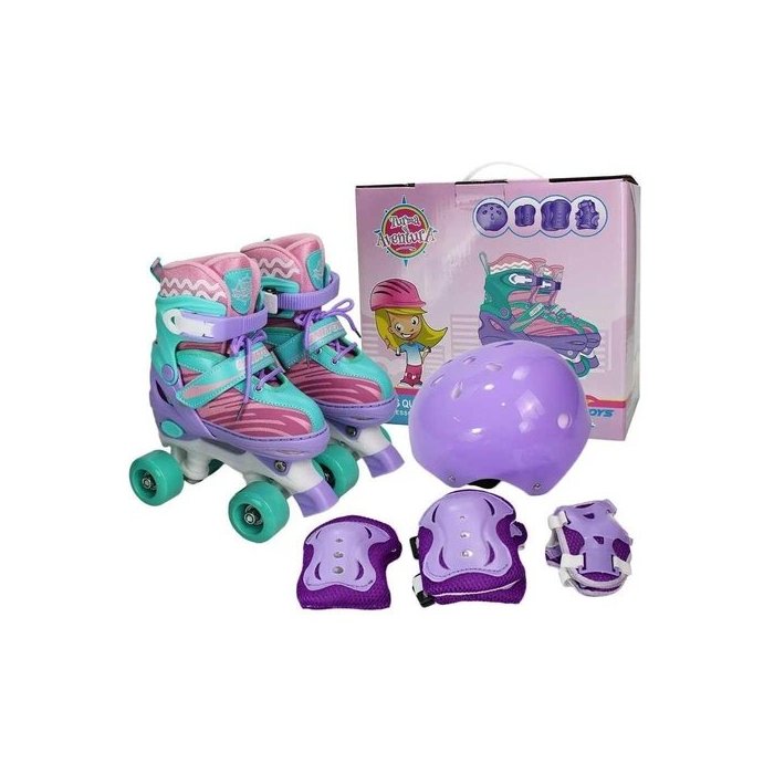 Patins Roller Quad Ajustável Com Kit de Proteção Capacete Infantil Violeta 34-37 Quatro Rodas