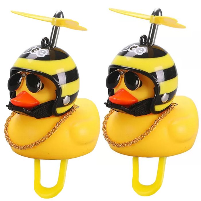 Pato Patinho Malandro Enfeite Guidao Bike Moto Sino Buzina Kit 2 Uni Sinalizaçao Oculos Cordao Capac Amarelo