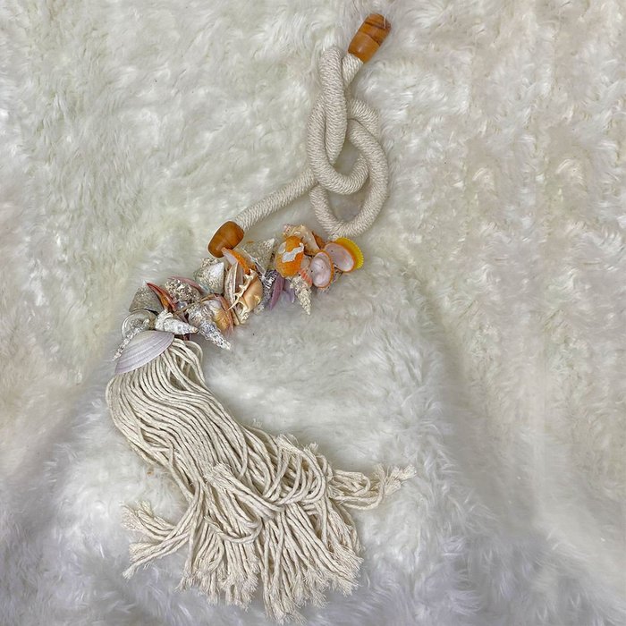 Peça Artesanal Roberto Dias Sertão e Mar II - Conchas com Tassel e Cordão Trançado e Ponteiras de Madeira