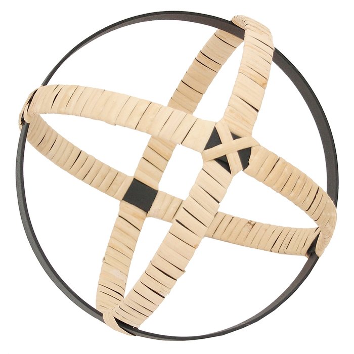 PECA DECORATIVA DE METAL E RATTAN 18CM X 18CM X 18CM