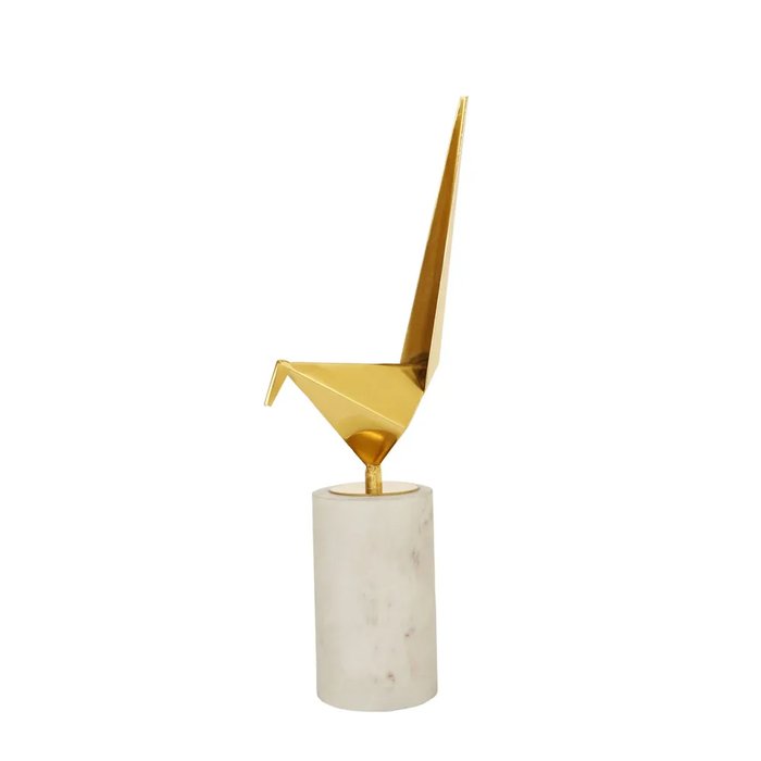 Peça Decorativa Pássaro Tsuru em Metal e Mámore Dourado 33cm Bld0005 Btc