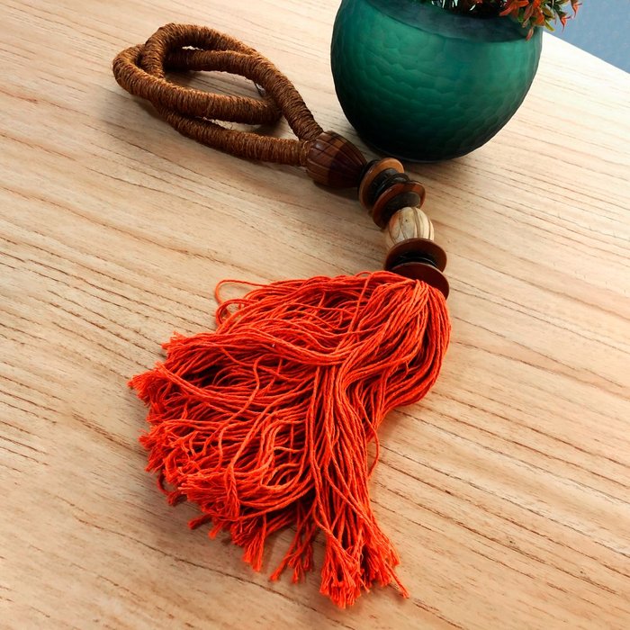 Peça Roberto Dias Corda Natural, Madeira e Cordões Laranja