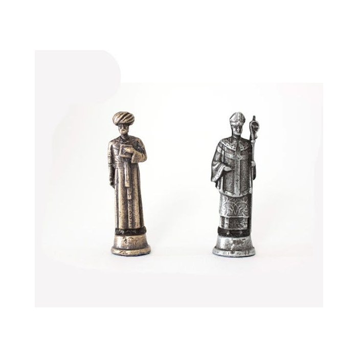 Peças Jogo Xadrez Tema Cruzadas em Metal Zinco Fundido e Envelh