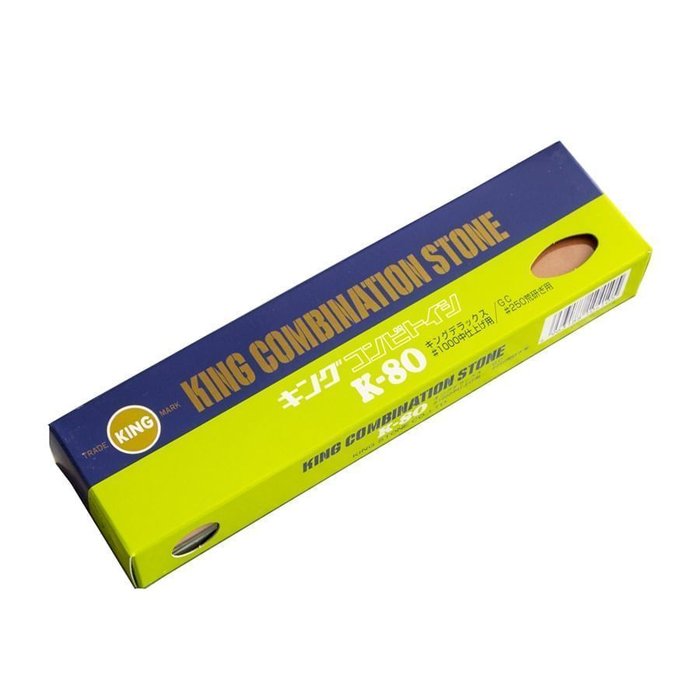 Fabricadas no Japão, as pedras king são reconhecidas mundialmente pela alta qualidade, rendimento e durabilidade para afiação e polimento de láminas. A K-80 é uma excelente combinação de grânulos grosso #250 e grânulo médio #1000 que buscam a manutenção e recuperação do fio de facas e ferramentas, polindo e eliminando minúsculas fissuras no fio de corte, aumentando desta forma a durabilidade da afiação evitando novas fissuras. Aço de qualidade precisa ser preservado e com as pedras King você recupera a afiação com o mínimo de desgaste da ferramenta.