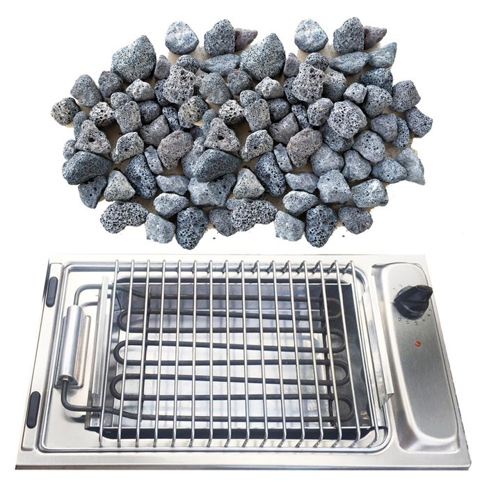 O seu churrasco na Churrasqueira Elétrica também vai ficar diferente com as pedras vulcânicas, pois quando colocadas na área de aquecimento, além de manter e propagar o calor gerado por mais tempo, irá deixar um gosto diferenciado em seu churrasco.