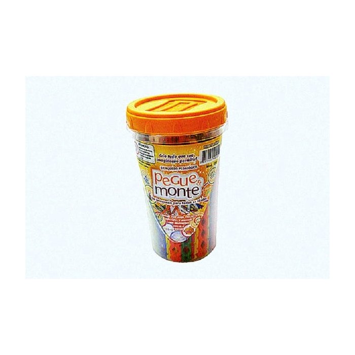 Copo plástico contendo 150 Pegs(palitos plásticos atóxicos totalmente flexíveis e encaixáveis entre si), em sete cores, indicados para crianças acima de 3 anos, jovens e adultos, que possibilitam a criação de milhares de formas e objetos, desde simples figuras até complexos objetos, como aviões, navios, barcos, motos, cestas, flores, pula cordas, casinhas, tiaras, pulseiras... Acompanha mini manual de instruções com passo a passos para montagem.