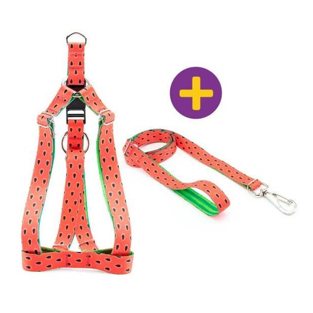 Peitoral e Guia Smooty Pet Melancia M Kit
