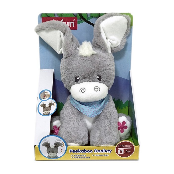 O botão fácil de pressionar faz o burro brincar de esconde-esconde, movimentando suas orelhas e com 2 modos de brincar: