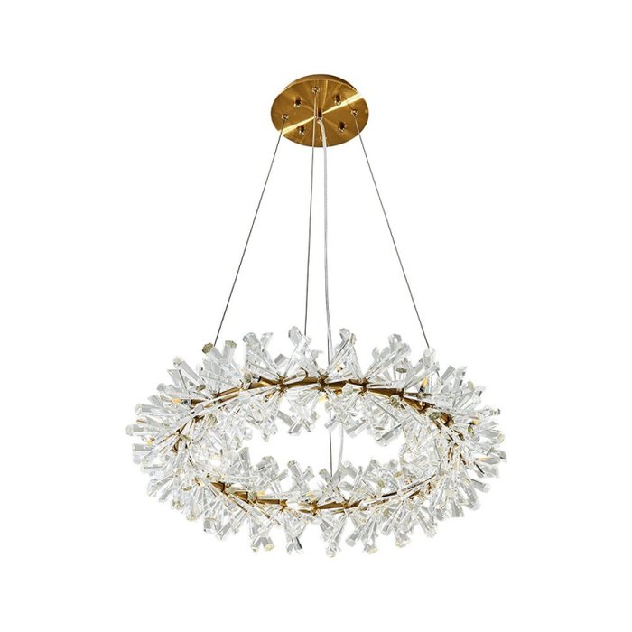 A linha de produtos da Bella Iluminação está sempre em sintonia com as novidades e lançamentos do mercado mundial de iluminação. Os produtos são produzidos pelos mais capacitados fabricantes asiáticos. Inovação em materiais, design, texturas, cores e acabamentos voltados para um único objetivo de oferecer o que existe de moderno na área de iluminação. Temos o prazer em apresentar o produto: PENDENTE FLORA DOURADO E TRANSP (D)60CM (A)18CM 18XG4 54W