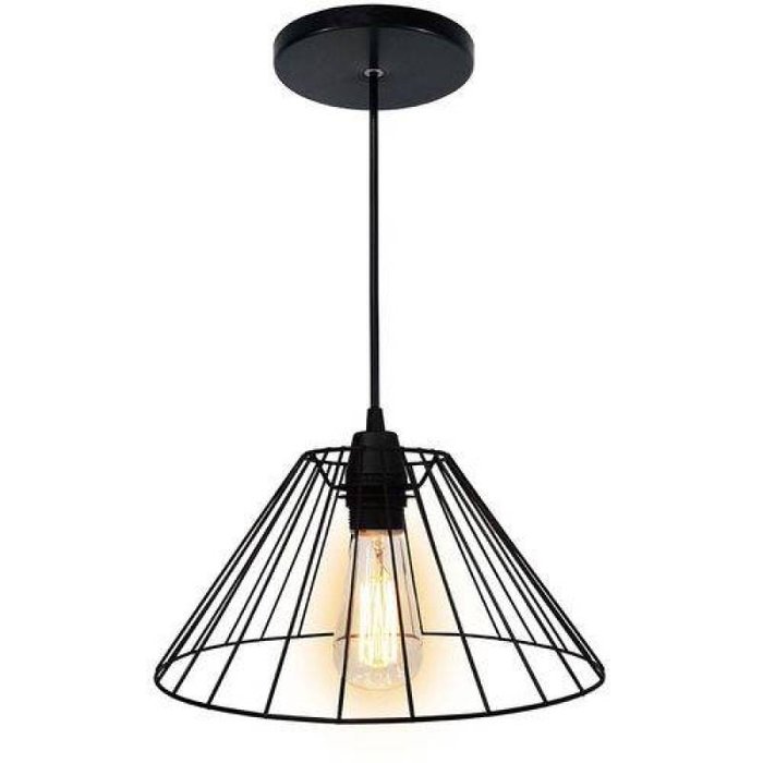 Pendente com estrutura aramada modelo Chinese Estrutura em aço com pintura eletrostática Preta Diâmetro: 30cm Altura: 15cm Peso: 420 gramas Soquete E27 (Padrão) Fornecido com cabo de 1 metro. Design diferenciado de extrema qualidade e beleza Ideal para Escritórios, varandas, jardins, salas, sacadas, espaços gourmet, etc.