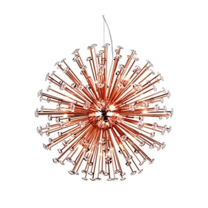 Pendente Astro 60cm Cobre Rose Soq 12xg9 Cobre Rosê e Cristais Transparente