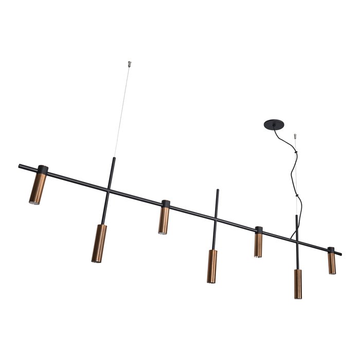 O Pendente Barão Cobre/Preto é uma peça atemporal que combina design moderno com funcionalidade. Sua estrutura em alumínio, com acabamento em preto e cobre, confere um visual sofisticado e elegante a qualquer ambiente. Com 7 bocais para lâmpadas mini dicróicas LED (não inclusas), oferece iluminação direcionada e versátil.