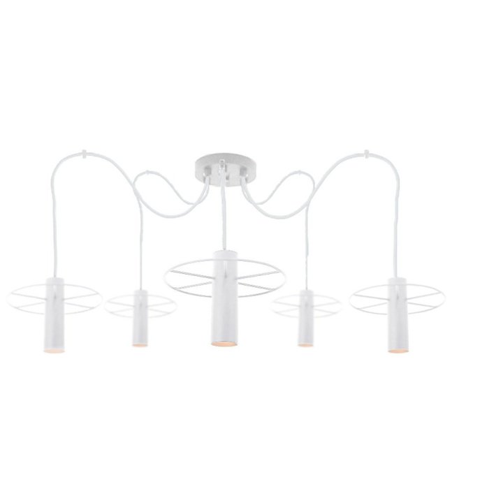 Pendente Trevo Aranha Aço Ø180mm Cabo PP 5xg9 - Branco Fosco, Potência Máxima 5 x 60W, Soquete 5 x G9, Tensão 100-240V | 50/60 Hz, IP 20, Material Aço e Alumínio.