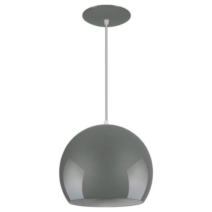 Modelo 1 luz. Cor Cinza. Altura máxima do cabo 110cm. 3 anos de garantia. Composto difusor em vidro, cúpula em aço com pintura epóxi. Utilizar lâmpadas E27 (lâmpadas não inclusas). Ideal para ambientes internos.