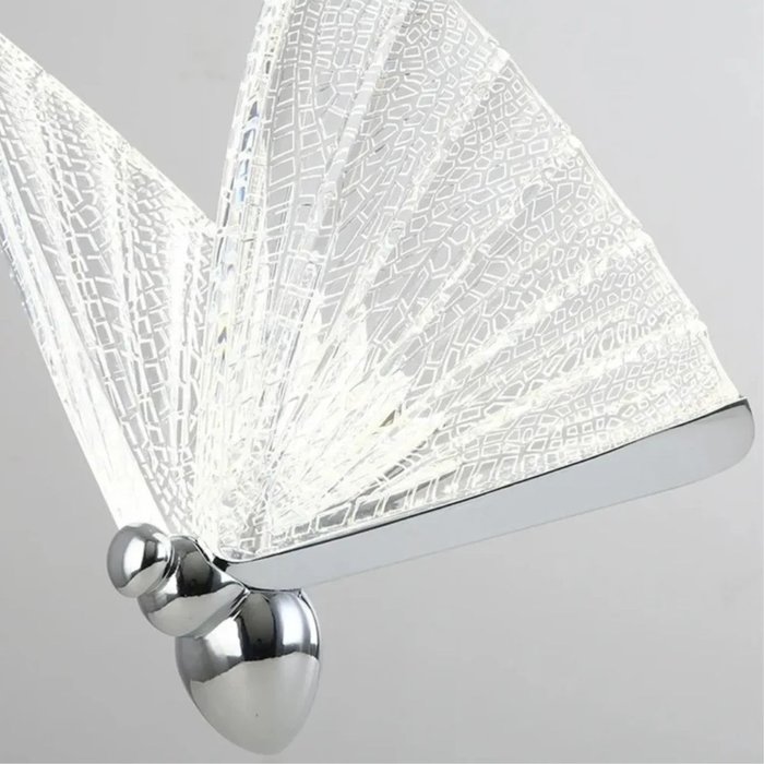 pendente borboleta cromado, luminária suspensa moderna, pendente LED 5W, luz quente 3000K, iluminação decorativa, pendente metálico, design contemporâneo, iluminação interna, pendente bivolt, luminária de teto, pendente em acrílico, pendente para sala, pendente para quarto, pendente elegante, pendente com asas, pendente borboleta G, pendente cromado polido, iluminação residencial, pendente decorativo, pendente LED moderno