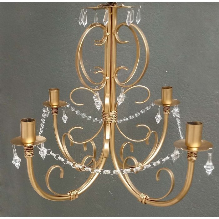 Pendente de Ferro Artesanal com Cristais Sala de Jantar e Tv Rustico 04 Bocais E27 - Dourado Dourado