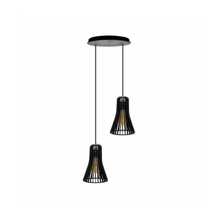 – Este produto é composto por 2 pendentes, 2 cabos com bocal e canopla em madeira.