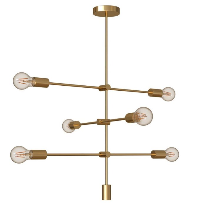 Pendente moderno em aço com pintura eletrostática dourada, soquetes E-27. As hastes são articuladas, proprocionando maior flexibilidade de uso. Indicado para uso interno, ideal para uso com lâmpadas de filamento.