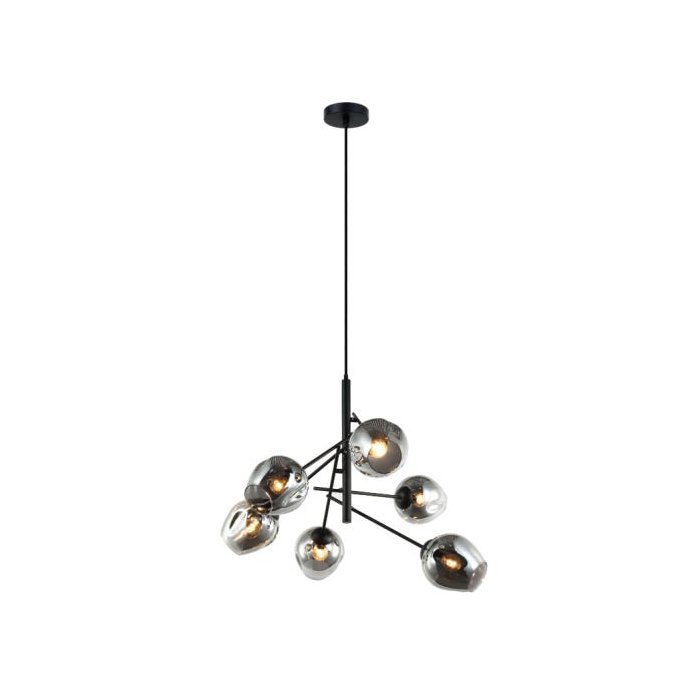 Pendente Indeb Preto com vidro Fumê para 6 suportes E27.