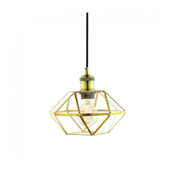 Pendente Industrial Vidro Elíptico 22cm Mart Collection Transparente/Dourado