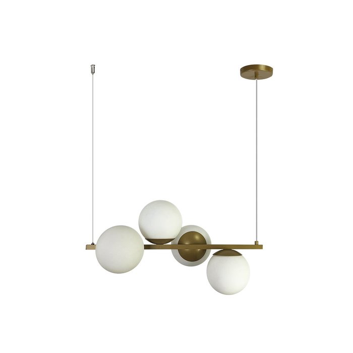 PENDENTE JABUTI DOURADO C/ 4 GLOBOS BRANCO LEITOSO Enerlux 5 Metros