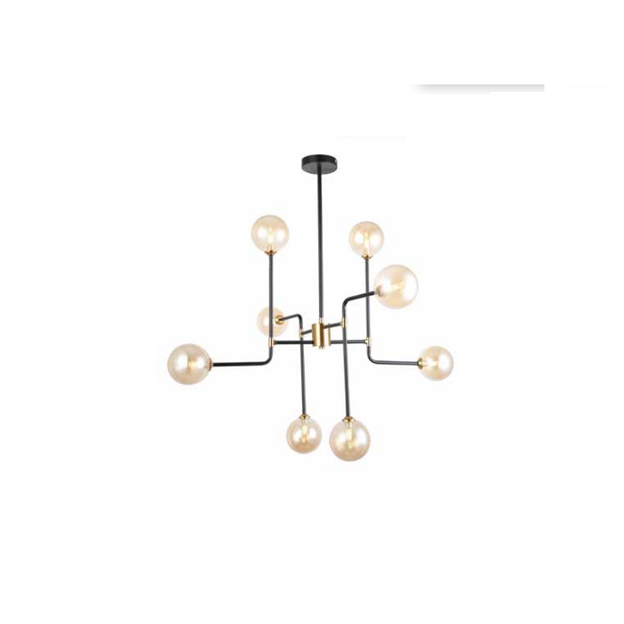 SKY-3091PT PENDENTE JOLIE W90XH75CM- METAL PRETO E VIDRO ÂMBAR BIVOLT 8XG9 MÁX LÂMPADAS NÃO INCLUSAS25W - METAL E VIDRO