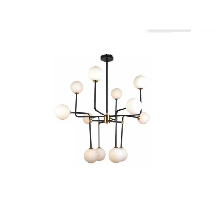 SKY-3092PT PENDENTE JOLIE W90XH75CM- METAL PRETO E VIDRO LEITOSO BIVOLT 12XG9 MÁX 25W - METAL E VIDRO LÂMPADAS NÃO INCLUSAS