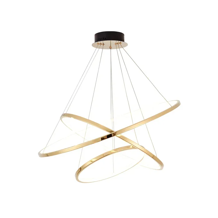 Este pendente é ideal para ambientes que buscam uma iluminação sofisticada e moderna, como salas de estar, salas de jantar, halls de entrada e escritórios. Seu design com três anéis de diferentes tamanhos proporciona um efeito visual impactante, tornando-se um elemento decorativo além de funcional.