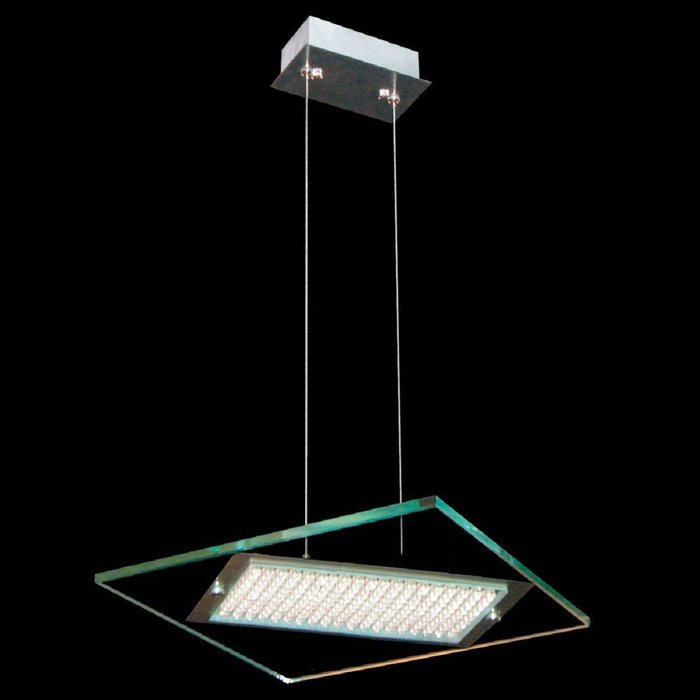 Pendente LED Quadrado 255 LEDs Home Line BivoltEstrutura do pendente de alumínio escovado, vidro e LedsSuspenso por cabo de aço com altura regulávelBase de alumínio escovado