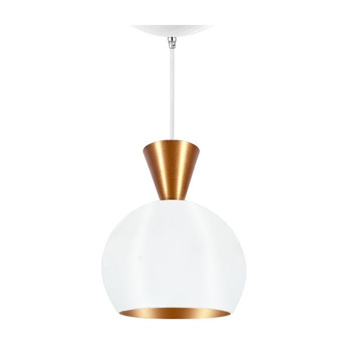 Pendente Luminária Bola M Premium 12cm Diâmetro x 19cm Altura - Branco Textura x Cobre Solido