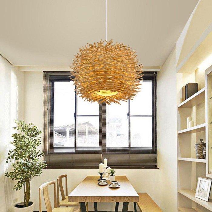 Pendente Luminaria Rattan Lustre Ninho De Pássaro Lâmpada Sala Estar Jantar Pastoral Fazenda Barra Lâmpada Do Teto Lustre Rattan Lâmpada De Bambu Cor Modelo-60cm
