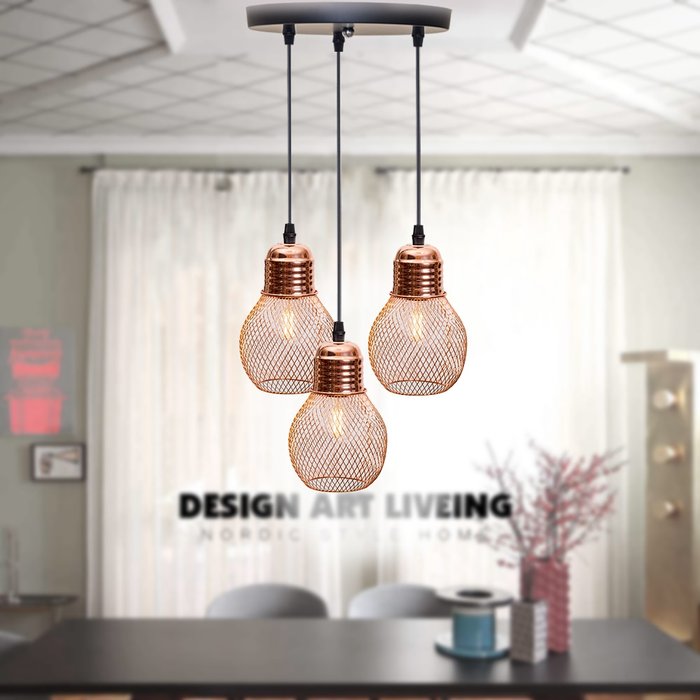 Pendente luminária suspensa com três pontas de metal, criativa, galvanizada, moderna, gaiola de meta