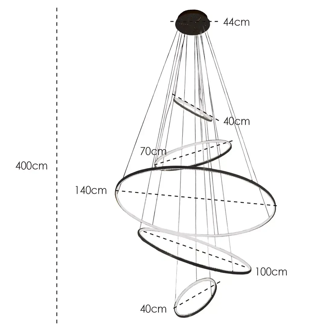 Pendente 140x400Cm Elos 140/100/70/40/40Cm e Cabo Ajustável 400cm Alumínio Dourado e Preto Fosco e Detalhes Em Cristais Led Integrado 150W 3000K Bivolt Luciin O pendente Luciin de 140x400cm apresenta uma impressionante estrutura de elos em alumínio dourado e preto fosco, acentuada por detalhes em cristais. Com um cabo ajustável de 400cm, este design oferece flexibilidade na instalação. Equipado com LED integrado de 150W e 3000K, proporciona uma iluminação eficiente e acolhedora. Sua funcionalidade bivolt e seu design elegante fazem deste pendente uma escolha sofisticada e contemporânea para iluminar espaços amplos com estilo e requinte. Especificações Técnicas:Tamanho: Φ140x400Cm Elos 140/100/70/40/40Cm e Cabo Ajustável 400cmReferência/Modelo: US100/30 / US100/2Cor: Alumínio Dourado e Preto Fosco Ou Somente Preto Fosco e Detalhes Em CristaisMaterial: Metal AlumínioGarantia: 12 MesesQuantidade de Lâmpadas: Led Integrado 150W 3000K BivoltTensão: BivoltUso Interno/Externo: InternoTipo de Soquete/Lâmpada: Led Integrado 150W 3000K BivoltMarca: Luciin