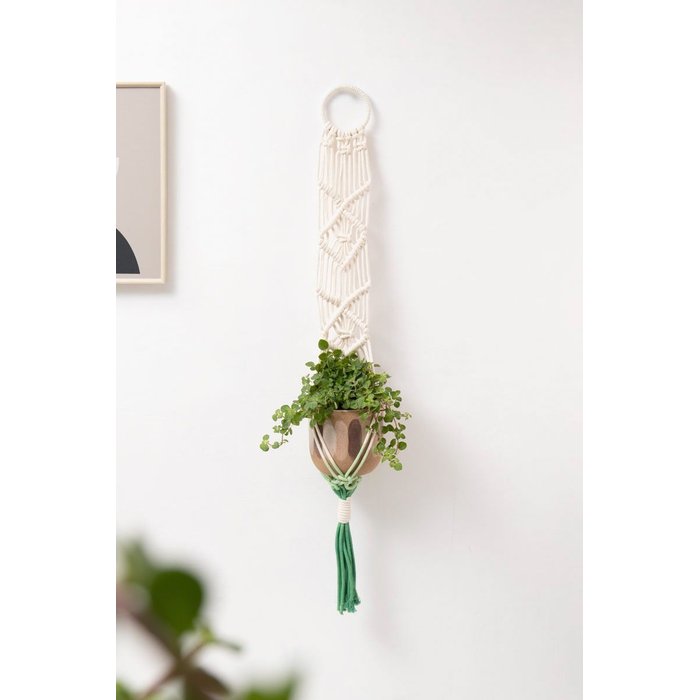 O Macramê para cachepot vai levar muita vida e energia para a sua decoração. As plantas serão suas grandes parceiras para compor com esse produto. Feito em macramê, técnica artesanal que é super tendência, esse produto conta com argolas de madeira que dão um charme especial e ajudam a pendurar o produto. As pontas possuem um tingimento em efeito ombré que dará ainda mais destaque para a decoração da sua parede.