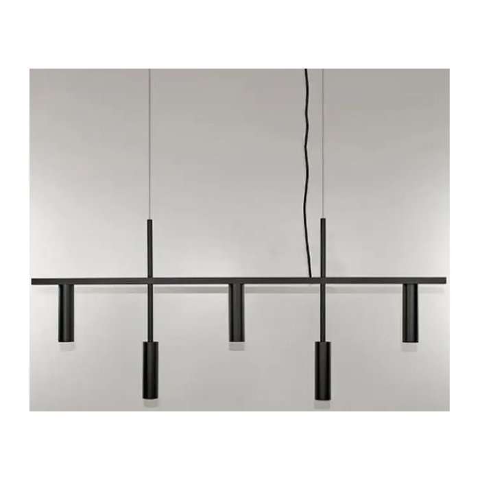 Pendente Moderno Luxo Tubular para 5 Mini Dicroicas Tubo Horizontal Retangular 1,00m Preto