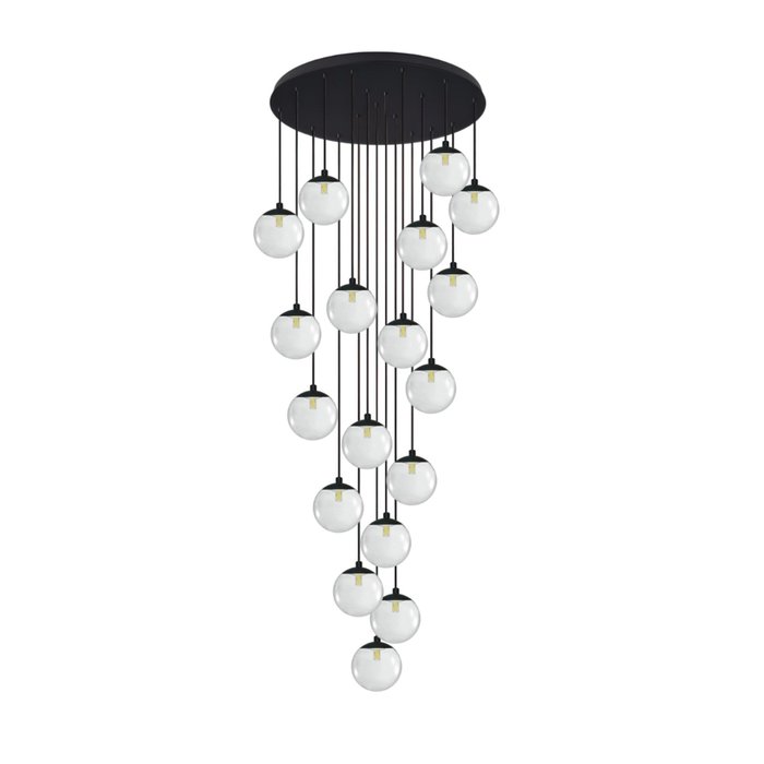 Pendente Moderno Preto 18 Globos Pé Direito Duplo Escada VIDRO TRANSPARENTE
