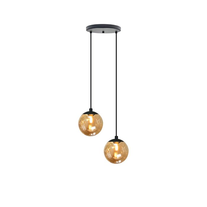 Pendente Moderno Preto Globo Duplo P/ Sala Espaço Gourmet Arevo Iluminação Jabuticaba VIDRO ÂMBAR VIDRO ÂMBAR
