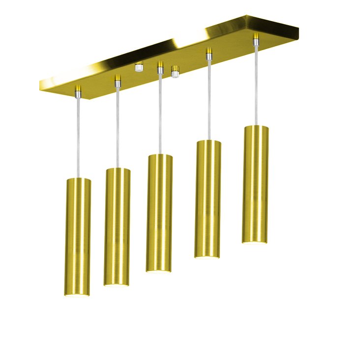 Pendente Quintuplo Tubo Cilindro Dourado 30Cm + Led 3k Dourado