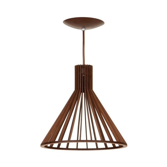 PENDENTE IDEAL PARA SALA QUARTO COZINHA OU BALCÃO SEGUE COM FIO DE UM METRO NA COR MARROM INDICADO PARA LâMPADA DE LED COM ROSCA ( NÃO ACOMPANHA A LâMPADA )MATERIAL : MDF TRATADA NA COR IMBUIA SOQUETE E27